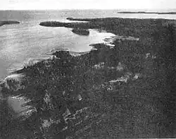 A lime quarry and kiln is located south of the town; this location was likely used to produce mortar for the chimneys. A saw mill was also located north of the town; this may or may not have been contemporaneous with Fort Drummond, but evidence of sawn logs in the fort buildings was confirmed.[12] Some of the islands in Whitney Bay were also used by the fort, with the fort surgeon living on one and another used for artillery target practice.[16]
