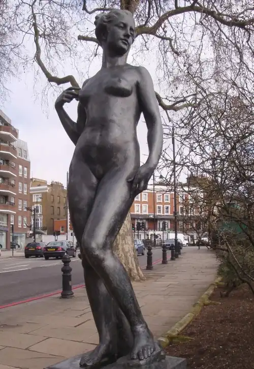 Atalanta, Memorial to Derwent Wood Chelsea Embankment, London 1929 Statue Bronze Grade II After the marble original of 1909 held by Manchester Art Gallery[33]