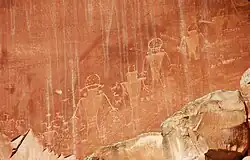 Fremont Indian State Park in the Clear Creek Canyon area in Sevier County Utah contains the biggest Fremont culture site in Utah. Thousand-year-old pit houses, petroglyphs, and other Fremont artifacts were discovered at Range Creek, Utah.[2] Nearby Nine Mile Canyon has long been known for its large collection of Fremont rock art. Other sites are found in The San Rafael Swell, Capitol Reef National Park, Dinosaur National Monument, Zion National Park, and Arches National Park.