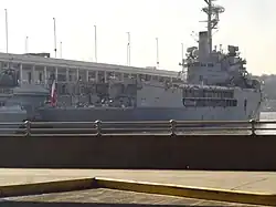 The helicopter carrier Jeanne d'Arc docked in Brest, February 2010 -