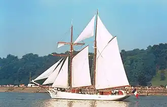 Étoile ("star") is a French naval schooner used as a training vessel. She was built in 1932 as a replica of a cod fishing vessel used off Iceland, as a training ship of the students of the École navale.[1] During the Second World War, Étoile sailed to the United Kingdom after the Fall of France and was used by the Free French Naval Forces, returning to Brest in 1945. The schooner as well as her sister ship Belle Poule are still used by the École Navale as training ships in European waters.