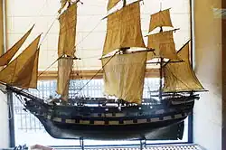 Ville de Marseille was ordered on 18 February 1811 and laid down on 27 June at the Arsenal de Toulon. The ship was launched on 15 August 1812, commissioned on 17 November and was completed in December.[3] In January 1813, Louis-André Senez was given command of Ville de Marseille. At the Bourbon Restoration in 1814, she was tasked with ferrying Duke Louis Philippe d'Orléans from Palermo to France.[4]