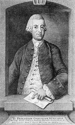 - ^ a b Möller, Rolf (1966). "Günther, Friedrich Christian". Neue Deutsche Biographie. Vol. 7. p. 272.