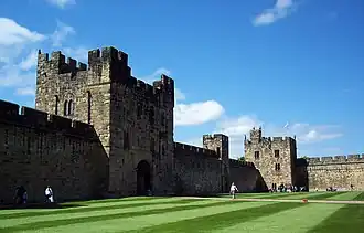 ![]() The Abbot's Tower, at the far end of the lawn, home to the Fusiliers Museum of Northumberland | |
