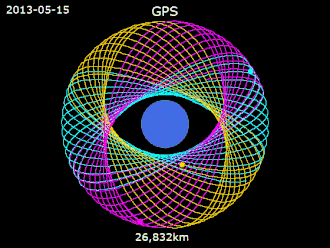 Animation of GPS satellites' orbits from 15 May 2013 to 6 September 2018