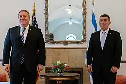 Gabriel "Gabi" Ashkenazi (Hebrew: גבי אשכנזי; born 25 February 1954)[1] is an Israeli politician and former military leader. He previously served as the minister of foreign affairs.[2][3] He was the Chief of General Staff of the Israel Defense Forces from 2007 to 2011. Ashkenazi served as a member of Blue and White in the Knesset.