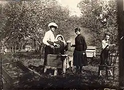After her father's death in 1909, she lived in Vilnius but family duties followed her – she had to take care of her three nephews and an orphan that her family informally adopted.[9] In Vilnius, she worked as editorial staff of Lietuvos žinios.[10] In 1911–1912, she was the editor of Žibutė, a liberal supplement to Lietuvos ūkininkas that was geared towards the women.[11] Žibutė encouraged women to seek education and be active in social and political life. It was a liberal answer to the Catholic Lietuvaitė, which supported the traditional role of a woman as a housekeeper and published articles on proper women's etiquette and culinary recipes.[8] In total, she wrote some 400 articles to various newspapers.[12] During World War I, Petkevičaitė returned to her childhood home. She completed courses for doctor's assistant and, according to her father's wishes, helped the sick. During the war she kept a diary, which was first published in 1925 and 1933.[2] In the diary, she expressed support to Hugo Haase and Social Democratic Party of Germany.[4]