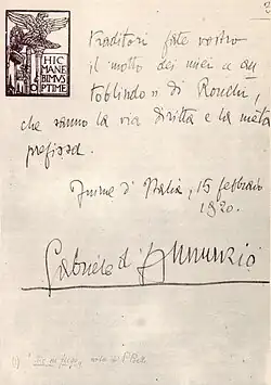 12. ^ "Gabriele D'Annunzio (1863-1938)". Italialibri.net (in Italian). 2000. Retrieved 8 May 2024.