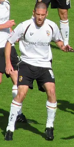 A defender, he represented Wales at under-19 level.[3] He began his career at Stoke City, signing as a professional in August 2001. He made his first-team debut in the 2003–04 season, also spending time on loan at Oldham Athletic. He spent part of 2004–05 on loan at Torquay United before returning on loan at Oldham. His loan deal was made permanent in the summer for a £50,000 fee, though he did not find success in the 2005–06 campaign. He spent the 2006–07 season on loan at Stockport County. He was voted the club's Player of the Season, after which he joined Stockport permanently, and was installed as club captain. Following a successful 2007–08 season, he joined Yeovil Town on loan in October 2008, having fallen out with the management at Stockport. He then joined Port Vale on a loan deal that was made permanent in January 2009. He was a key member of the first team in 2009–10 and 2010–11 and was also appointed as the club's reserve team manager for the 2011–12 season. He retired from playing in January 2013 and began coaching at the Stoke City Academy.