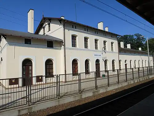 Gdańsk Oliwa railway station is a railway station serving the city of Gdańsk, in the Pomeranian Voivodeship, Poland. The station opened in 1870 and is located on the Gdańsk–Stargard railway and the parallel Gdańsk Śródmieście–Rumia railway. The station is located in the Oliwa quarter of the city. The train services are operated by PKP, Przewozy Regionalne and SKM Tricity. Koleje Mazowieckie trains operate here during the summer.