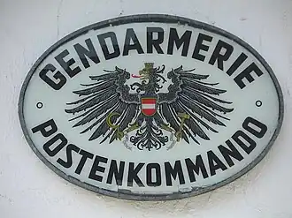 The Federal Gendarmerie (German: Bundesgendarmerie) was an Austrian federal police agency. It was responsible for approximately two thirds of the population on approximately 98% of Austrian national territory, alongside the Federal Safety Guard Corps (Bundessicherheitswachekorps) and Detective Corps (Kriminalbeamtenkorps). All Austrian law enforcement agencies were merged into the Federal Police (Bundespolizei) agency, with effect from 1 July 2005.