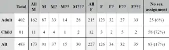 Numerous graves dated to the Latial period II lack fibulae, which were otherwise the most common grave good and—according to Cougle—the most heavily gendered. The majority of the graves that lack fibulae are infant burials, leading Cougle to argue that the infants may not have yet been assigned a gender identity, thereby negating the need for a gender-signifying object.[85] Out of a sample of Latial period IIA and IIB subadult graves gathered by Venderbos, only 40% of the burials included objects suggestive of any gender identity. According to Venderbos, the majority of these children were gendered as women, usually via the presence of hair rings, arch bow fibulae, or a necklace.[86] Sestieri notes that, in Osteria, the graves of nearly all girls younger than 12 years of age contain gendered items, whereas the graves of boys from the same age groups almost entirely lack markers of gender roles.[55] Moreover, Sestieri argues that the presence of cult-related objects in the graves of subadult women indicates that these individuals received these ritual roles in youth.[65]