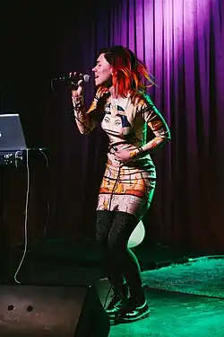 Genevieve Schatz (born April 1, 1987),[1][2] better known mononymously as Genevieve, is an American indie pop singer and songwriter from Elgin, Illinois, United States. Schatz is the frontwoman of Chicago indie rock band Company of Thieves and embarked on her solo career as Genevieve in early 2014. Her first solo track, "Show Your Colors", premiered on Vice Noisey in December 2014.[3] Her debut EP Show Your Colors was released on March 10, 2015, via Wind-up Records.[4]