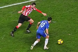 He went on to make 25 appearances in all competitions for West Ham during the 2006–07 season.[6] McCartney scored his first goal for The Hammers, a strong back post header, in a friendly against Roma one week before the start of the 2007–08 season.[10] He scored his first Premier League goal for West Ham in the 1–1 home draw with Bolton Wanderers on 4 November 2007 with a magnificent volley.[11] At the end of the 2007–2008 season McCartney received the runner up Hammer of the Year Award, having played in all 38 Premiership games. McCartney's sale back to his former club Sunderland led to West Ham manager Alan Curbishley resigning after he claimed the player was sold against his wishes.[12]