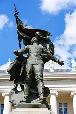 Villebois-Mareuil returned to France shortly after the start of the Franco-Prussian War in 1871. He joined the 7th battalion des Chasseurs à Pied,[1] in which he took command of the 6th company. On 28 January Blois was occupied by the Prussians. Villebois-Mareuil liberated the city and proved himself exemplary under fire, despite being badly injured during the battle. He refused to be evacuated until the end of the hostilities and spent weeks between life and death. He had to spend 9 months in hospital, after which he was decorated and promoted to the rank of Captain.
