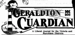 The Geraldton Guardian is a newspaper that was established in Geraldton, Western Australia, on 1 October 1906 to serve the Victoria and Murchison Districts. It was launched on principles of liberal democracy, state rights, nationalism and British preference.[1]