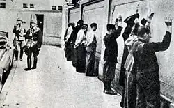 While in the early days of the occupation, reprisals often had a random nature, in the following weeks, they were targeted at specific professional groups (such as teachers, Catholic clergy), social environments, and members of organizations and associations promoting Polish identity (such as the Polish Western Union, Maritime and Colonial League, or the Insurgents and Veterans Association).[72] Arrests were carried out according to the established mechanism of "cleansing actions" that had been used in the initial days of the occupation. On 14 October 1939, a raid was organized against Polish teachers, during which 186 educators were arrested. On the night of October 18–19, a raid was conducted against members of the Polish Western Union, resulting in the arrest of 91 individuals (including 21 women).[73] On October 20, the Germans conducted a large-scale roundup in the vicinity of Kujawska Street. Nearly 1,200 people were temporarily arrested at that time. After interrogations, 27 individuals were identified whose names appeared on proscription lists, police files, or were reported by Volksdeutsche.[73][74] In November, arrests of Catholic priests began.[10] A large-scale "pacification action" (Befriedungsaktion) was also carried out on November 11, the Polish Independence Day. This operation involved 115 groups consisting of Gestapo, Kripo, Schutzpolizei officers, and members of Selbstschutz. Nearly 3,800 people were detained during this operation. This was the last major roundup organized by the Germans in Bydgoszcz.[74]