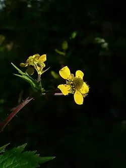 Geum macrophyllum, commonly known as largeleaf avens or large-leaved avens[2] is a flowering plant found from the Arctic south to the northern U.S. states, and in the Rocky Mountains and west to the Sierra Nevada in California and as far south as Northwestern Mexico.