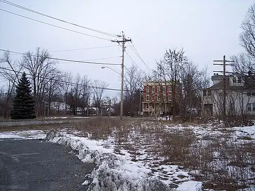 The station catered to a local community that had a substantial industry during the era of the NYCRR, and, earlier, the New York and Harlem Railroad. Prior to this, however, another railroad laid tracks through the community nearby: specifically, the Hudson and Berkshire Railroad, which was completed in 1846 between Hudson and Chatham It went bankrupt and was reorganized as the Hudson and Boston Railroad in 1855: later acquired by the Boston and Albany Railroad in 1870, which eventually downgraded it to the B&A Hudson Branch. The New York and Harlem laid tracks through Ghent to Chatham in 1852. The line was eventually taken over by the New York Central Railroad (NYCRR), and provided both passenger and freight train service. Ghent was the station that served both the Harlem Division and the former Boston and Albany Railroad Hudson Branch.[3] The station had a tower that coordinated the two railroads from here to Chatham Union Station until 1936.[4] It also included a hotel named The Bartlett House, which was built in 1870 and has been listed on the National Register of Historic Places since May 8, 2012.[5]