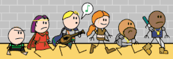 ![]() Principal characters, from left to right: Belkar Bitterleaf, Vaarsuvius, Elan, Haley Starshine, Durkon Thundershield, and Roy Greenhilt | |