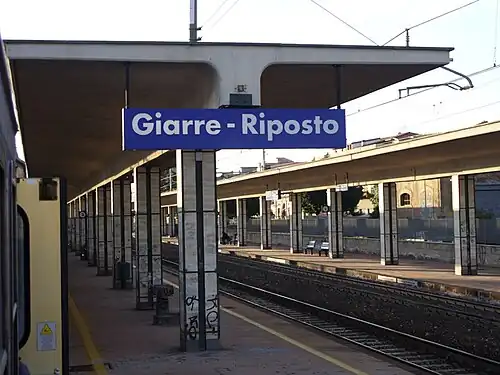 Giarre–Riposto is a railway station owned by Rete Ferroviaria Italiana located in the municipality of Giarre. It is located on the Messina–Syracuse railway line.