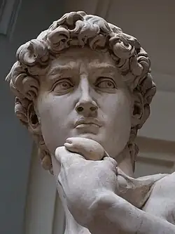 Araki thought that in addition to being a good person, the protagonist needs to be a hero as well – which he thought would require the character to solve problems alone through their own abilities; although the Bucciarati gang has a unified goal, they were depicted as standing on their own when fighting, and as a group of outcasts rather than a leader and his followers.[4] Araki sees that writing for the team becomes a challenge and as the story progresses, they all become the protagonists rather than Giorno on his own.[3] The curls in Giorno's hair were inspired by Michelangelo's statue David.[5]
