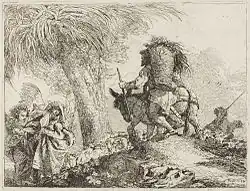 Domenico was also a significant printmaker in etching, often reproducing his own or his father's paintings. But his original compositions include a series of twenty-four illustrations of the Idee Pittoresche sulla Fuga in Egitto ("Picturesque Scenes from the Flight into Egypt"), and one of the fourteen Stations of the Cross.