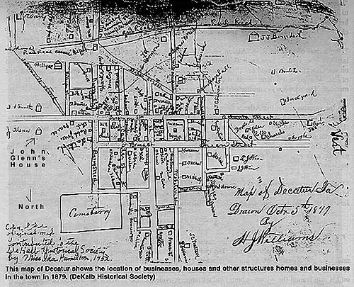 Glennwood Estates has been a distinct parcel since DeKalb County, Georgia, was first divided into parcels. The property passed through a number of owners until it was sold to John T. Glenn, a carpetbagger from New York, c. 1869.[2] Mr. Glenn began developing land in the area in the 1870s. His house is noted on an 1879 map of Decatur.[3] After his death, a small portion of the land was sold for Glenwood School.