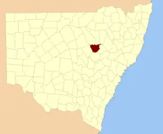 Gowen County is one of the 141 cadastral divisions of New South Wales. It is located to the east of the Castlereagh River in the area to the east of Gilgandra, to Coonabarabran in the north-east. This includes land on both sides of the Newell Highway.