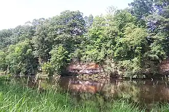 Oak Park in Grand Ledge is one of the few places to climb in Michigan, making it a popular destination for local climbers. The sandstone cliffs along the river have nearly 100 routes ranging from basic (5.2) to very difficult (5.13).[18]