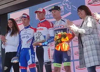 2019 Grand Prix de Denain: Marc Sarreau, winner Mathieu van der Poel and Timothy Dupont