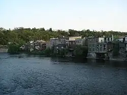 The people of the Princess Point complex (c. 500 CE – 1000 CE) are strongly associated with the Grand River by archaeologists. Princess Point sites cluster heavily along the river's length,[31] where the focus and concentration of Princess Point people shifted from their earlier territory around Princess Point near Hamilton.[32] Princess Point people were attracted to the fertile Grand River floodplains, in common with other peoples engaging in maize horticulture around the same time. Floodplains provided rich soils for cultivation, as well as easy access to riverine resources.[33] Indeed, early evidence of lake sturgeon fishing on the Grand River has been discovered at the Cayuga Bridge site, which is also associated with the Princess Point complex and dated to AD 700–900. Thousands of fish remains were also unearthed at the Porteous and Holmedale sites near Brantford, which date to around AD 1000.[34]