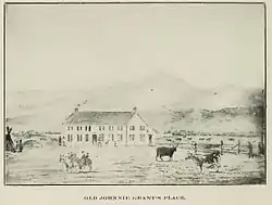 Grant started using the Deer Lodge Valley in 1857 to graze his cattle during the winter along the banks of the Clark Fork river near Cottonwood creek. In 1859 he decided to permanently locate a ranch and constructed a permanent residence in 1862. He convinced traders to settle around him, forming the town of Cottonwood (later to become Deer Lodge). Johnny was initially successful, but found that when gold miners arrived in the area, he was at a disadvantage, because he spoke French and the newcomers spoke English. He was taken advantage of in contracts and felt that he could no longer be successful in the area. In August 1866, he sold his ranch to a cattle baron, Conrad Kohrs, for $19,200[5] and returned to Canada.[6]