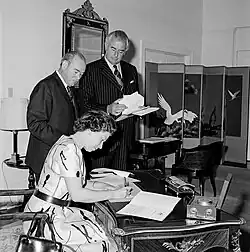 Under the New South Wales constitution, the governor formally provides, keeps and uses the "Public Seal of the State".[13] In fact, the seal is kept at the New South Wales cabinet office and is used by government officials.[14] On 17 January 1861, the governor demanded to use the seal on a deed, however the premier advised against this and threaten to resign if the governor acted otherwise. The governor insisted he be given the seal, so the premier did so, but resigned along with the rest of the ministry.[14] The governor then relented, returning the seal and refused to accept the resignations.[14] However, the governor later fled Sydney on the day of his term expiring in order to avoid a censure motion, being debated in Parliament on the same day.[14]