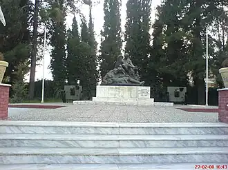 The "Black Statue", as it was established to be called, is the Hero of the city of Giannitsa, a work by the sculptor Grigorios Zevgolis that was placed there in 1926 in memory of the warriors who gave their lives for the liberation of the city from the Ottomans during the Balkan Wars of 1912–1913.[6] This statue represents the Winged Time, and at his feet the mother Greece, having embraced her son, a killed soldier. It is located at the eastern entrance of the city by Egnatia Street (at coordinates 40°46′50″N 22°24′54″E / 40.780680°N 22.415°E).[6]