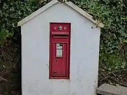 The station also features a post box, dating from the early part of the 20th century when the Manx Electric Railway held the contract for collection of mail at all stations and halts along its routes. The contract was lost in 1975 when the railway closed for the winter and could therefore not provide year-round collection facilities. Despite this, the station retains the post box, which is now cleared by Post Office staff in road vehicles. This practice continues at the other stopping places on the line, and is one of the distinctive features of even the most basic and remote of the line's stopping places. The box that remains in situ is the original one installed during the reign of Queen Victoria and was remodelled into a new plinth as part of the centenary celebrations for the station, it now only serves a handful of private residences nearby but remains in operational use. It was manufactured by W.T. Allen who held the contract from 1887 to make all such wall boxes. Travelling Post Offices remain a feature on the tramway during the annual Heritage Transport Festival using original restored mail vans.