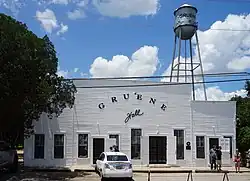 Gruene (/ˈɡrn/ GREEN)[2] is a German-Texan town in Comal County in the U.S. state of Texas. Once a significant cotton-producing community along the Guadalupe River, the town has now shifted its economy to one supported primarily by tourism. Gruene, a German surname, (pronounced "Green") is now a district within the city limits of New Braunfels, and much of it was listed in the National Register of Historic Places on April 21, 1975. The city is known for its German-Texan heritage and architecture and many residents of Gruene and New Braunfels are descendants of the first German settlers.