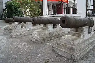 Hà Giang museum, located in the centre of Hà Giang city, not only has an array of findings from archaeological excavations but also houses historical artefacts, a bronze drum collection and also costumes of the local ethnic clans.[7] The museum building is in the form of a big lotus opening up its petals, in a red and white colour mansion.[10]