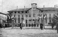 It was to replace the Hôtel-Dieu Saint-Jacques, deemed too small and dilapidated, that the creation of a new suburban hospital was decided in 1905 and it was not until September 25, 1911, that the first stone was laid in the presence of John Cruppi.[2] Several pavilions were built, then requisitioned for the health service during the World War I.[3]
