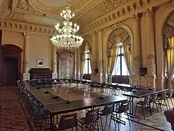 The first municipal building, which was in the historic centre of Chambéry, dated back at least to the early 14th century. Referred to as the Maison de la Cité (the City House), it was the place where the church council met and the bishop of Grenoble also had an office there.[1] A library and a rudimentary collection of art, endowed by the Abbot of Mellarède, was established and opened to the public in one of the rooms on the first floor of the building in 1783. This collection later developed to become the Musée des beaux-arts (the Museum of Fine Art).[2]