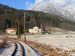 The Lower Austrian Höllental Railway (German: Höllentalbahn) is a narrow gauge electric railway with a track gauge of 760 mm (2 ft 5+15⁄16 in), which runs from the Austrian Federal Railways (ÖBB) station of Payerbach Reichenau on the Semmering Railway for approximately five kilometres (3 mi) through the market town of Reichenau an der Rax to Hirschwang.