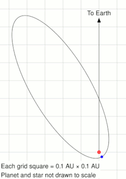 HD 80606 b has the most eccentric orbit of any known planet after HD 20782 b. Its eccentricity is 0.9336, comparable to Halley's Comet. The eccentricity may be a result of the Kozai mechanism, which would occur if the planet's orbit is significantly inclined to that of the binary stars. This interpretation is supported by measurements of the Rossiter–McLaughlin effect, which indicate that the planet's orbit may be significantly inclined (by 42±8°)[10][11] to the rotational axis of the star, a configuration which would be expected if the Kozai mechanism were responsible for the orbit.[4]