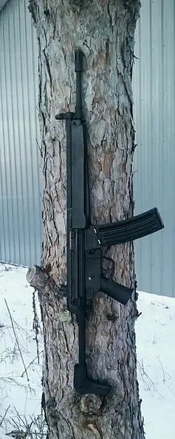 The C93 is a civilian version of the HK93 created by Century International Arms, Inc.[1] It comes with an 18.9-or-16.25-inch (480 or 413 mm) barrel with a 1:9 twist ratio. A carrying handle and 40-round magazine are standard. Advertised weight is 8.2 lb (3.7 kg). The C-93 is built from Thai Type-11 parts kits using an American made barrel and other miscellaneous American parts.
