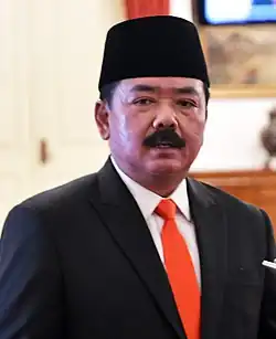 Air Chief Marshal (Ret.) Hadi Tjahjanto (born 8 November 1963) is the Coordinating Minister for Political, Legal, and Security Affairs under President Joko Widodo's Onward Indonesia Cabinet, replacing Mahfud MD due to his resignation. He is a former officer in the Indonesian Air Force who previously served as the 20th Commander of the Indonesian National Armed Forces. An alumnus of the Indonesian Air Force Academy and Flight School, he was appointed by president Joko Widodo in 2017 as the Commander of the Armed Forces (Panglima).[1]