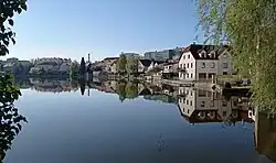 The basin area is rich in fishponds. The largest of them is Krvavý rybník with an area of 118 ha (290 acres). Many of the fishponds are built directly on the Hamerský potok; the largest of them are Ratmírovský rybník with an area of 73 ha (180 acres) and Hejtman with an area of 65 ha (160 acres).[1] A significant pond is also Vajgar, located in the centre of Jindřichův Hradec near the stream's mouth. With an area of 49 ha (120 acres), it is one of the symbols of the town.[4]