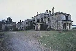 After the war, John Chattell (1931–2021) bought the estate, dividing the house into eleven apartments. However, dry and wet rot became increasingly problematic and the house uninhabitable; its listed building description, written after a visit in November 1953, already noted that it was 'empty and boarded up', and placed it at Grade II status; it was later upgraded to Grade I.[22] In 1973, rock band Led Zeppelin bought Hammerwood at auction, intending to turn it into a recording studio and flats. Although the house did make an appearance at the beginning of the film The Song Remains the Same, their plans did not progress. Amid significant vandalism, three tonnes of lead were removed from the roof, compromising it in fourteen locations and allowing thousands of gallons of water to flow into the structure. The progression of the rot accelerated, leading the house to become increasingly structurally unsafe.[23] Hammerwood was boarded up in 1976, and put on sale in 1978.[19]