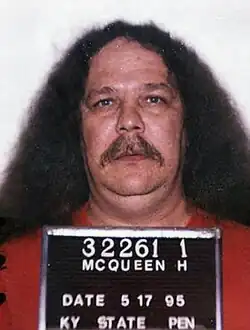 McQueen, his 19-year-old half-brother William Keith Burnell, and his 18-year-old girlfriend Linda Rose spent the day of January 17, 1980 ingesting copious amounts of marijuana, alcohol, and other drugs simultaneously. At approximately 11:00 p.m., McQueen and Burnell entered a Minit Mart in Richmond, Kentucky, with the intent of committing armed robbery in the store. At the time that McQueen and Burnell entered the store, McQueen was high on valium. Rose stayed in the car during the robbery, while McQueen and Burnell entered the store armed with a .22 caliber handgun. The only person in the store was Rebecca O'Hearn, a 22-year-old clerk. McQueen and Burnell ordered O'Hearn to empty the cash register and safe. After she did so, McQueen shot O'Hearn twice point-blank in the face and the back of the head. Burnell detached the store's surveillance camera and placed it in a bag, after which he and McQueen left the store with the surveillance camera, $1,500 in cash, and food stamps, and disposed of the surveillance camera in a nearby pond.[2][4] A park ranger found O'Hearn's body minutes after McQueen, Burnell, and Rose fled the scene; the park ranger alerted police. O'Hearn, who was barely alive when discovered, was pronounced dead soon after arriving at the hospital.[2]