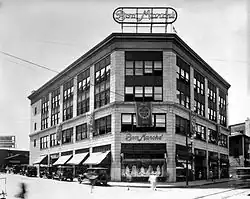 This new building served as a larger location for the Bon Marché, originally called Lipinsky and Ellick, which was founded in downtown Asheville in the 1890s.[5] The owner, Solomon Lipinsky, was a prominent Jewish businessman and community leader in Asheville.[6] from the 1890s to 1978, nearly 90 years, the Bon Marché became the longest running department store in Asheville's history.[2] The name Bon Marché, meaning "the good deal" or "the good market" in French, came from Le Bon Marché, one of the world's first department stores located in Paris.[7]