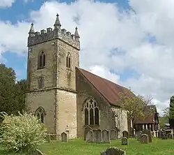 All Saints Anglican Church is in the centre of the village, and is in the Diocese of Guildford. The church predates 1836 when the wooden-shingled spire burnt down. The church was subsequently rebuilt (without the spire) in 1859.[15] Features in the rebuilt church date its existence back at least to the 13th century.[16] Nikolaus Pevsner noted that the oblong piece of 13th century stained glass of a female saint being decapitated was ”exquisite”.[17]