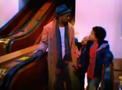 The visually elaborate live-action music video for "Heard 'Em Say" harbors a distinct Christmas theme.[82] Gondry created a surrealistic story set inside the Herald Square Macy's store, which is fantasy styled.[3][85] West plays a homeless single father monitoring his three fictional children, who sneak into the store and stay overnight sometime around the Christmas season.[3][79] Levine plays the role of a guard, granting entry to West and his children after store opening hours. They spend time overnight in the store, which turns into a magical playground.[3][16] West and the children make the most of their time, running around the area as Levine sings his lines on "Heard 'Em Say" and chases them.[3][84] West does some shopping while the youngsters play around the store, which comes to life.[16][79] Within the store, suits dance in the Men's section, Christmas dinners are cooked, sofa beds fold and unfold to the rhythm of the music, a continuous race track comes together piece-by-piece in seconds, and the children drive around on a police bed only to be confronted by the security guard.[3][16][79] A cameo appearance is made by Brion, who plays the song's piano melody on a miniature piano in the toy section.[3][16]